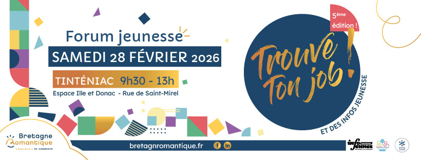 Le samedi 28 février 2026, la Communauté de communes Bretagne romantique organise la 5ᵉ édition du Forum Jeunesse à Tinténiac. Un événement incontournable pour :